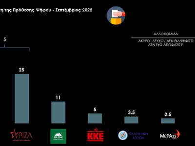 Σύμφωνα με τη δημοσκόπηση της Prorata, στον δείκτη πρόθεσης ψήφου η ΝΔ καταγράφεται στο 30% με απώλειες της τάξης του 1% συγκριτικά με τη μέτρηση του Ιουλίου, ενώ ο ΣΥΡΙΖΑ – ΠΣ στο 25%, διαμορφώνοντας την απόσταση μεταξύ των δύο κομμάτων στο 5%.