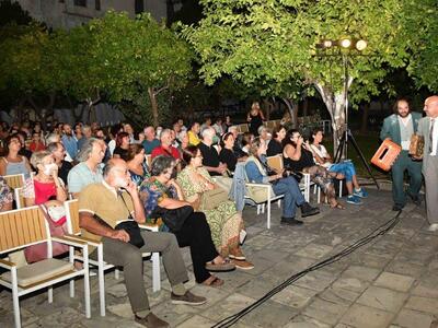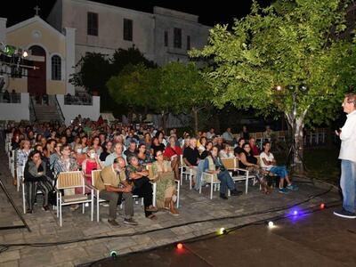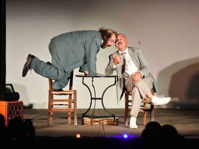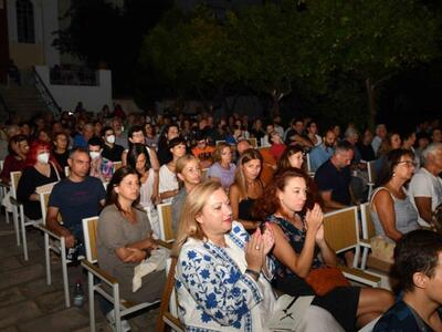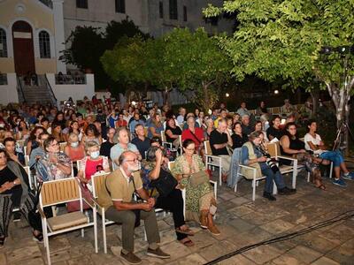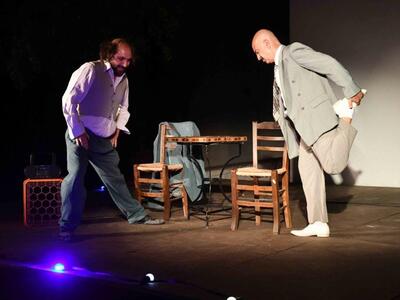 Στο κατάμεστο χώρο του δροσερού αίθριου οι φίλοι του θεάτρου απόλαυσαν μία κωμωδία δοσμένη ξεχωριστά από τον Θοδωρή Σκυφτούλη και Ντίνο Ποντικόπουλο σε σκηνοθεσία της Δανάης Σπηλιώτη.