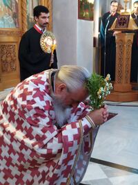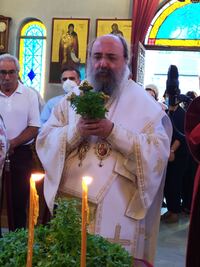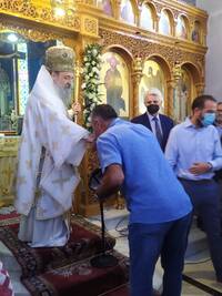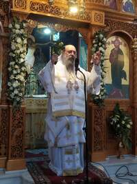Ἀνήμερα τῆς ἑορτῆς, ἐτέλεσε τήν Θεία Λειτουργία καί ἐκήρυξε τόν θεῖο λόγο στήν Ἱερά Μονή Τιμίου Σταυροῦ, Συχαινῶν Πατρῶν.