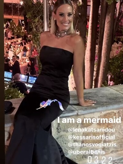 Η μία από τους δύο κουμπάρους στον γάμο ήταν η Ελεονώρα Μελέτη, η οποία έχει φιλία ετών με τον Γιώργο Μελισσανίδη. Για την εμφάνισή της επέλεξε ένα μαύρο μάξι φόρεμα σε γοργονέ στιλ. Η παρουσιάστρια έκανε την πιο safe αλλά και κομψή επιλογή ενώ ολοκλήρωσε το look με κοσμήματα Κessaris.
