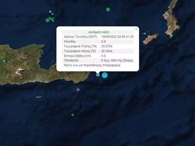 Σεισμός 4,2 Ρίχτερ σημειώθηκε το πρωί της Δευτέρας (19.09.2022) στην Κρήτη, 15 χλμ ανατολικά-νοτιοανατολικά της Ζάκρου. Το εστιακό βάθος, σύμφωνα με το Γεωδυναμικό Ινστιτούτο, εντοπίζεται στα 10,02 χλμ.