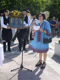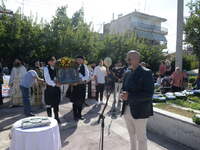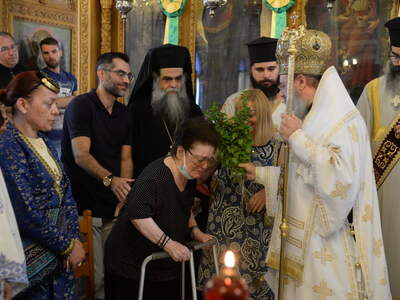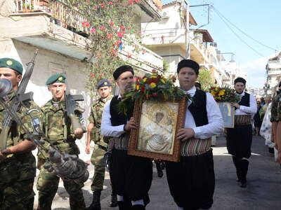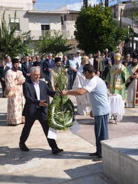 Προσέφερε δέσμη ἀπό βασιλικό στήν κόρη τῆς ἀείμνηστης κυρά Φιλιώς Μανάρα, στήν Ἀργυρώ καί στήν κόρη τῆς Ἀργυρώς την Φιλιώ ἡ ὁποία φέρει τό ὂνομά τῆς μακαριστῆς Φιλιῶς καί στόν δισέγγονό τῆς Μετά τήν Λειτουργία, σχηματίστηκε λιτανευτική πομπή μέ τίς εἰκόνες τῆς Παναγίας τῆς Σμυρνιᾶς καί τῶν Ἁγίων τῆς Μικρασίας, ἡ ὁποία ἒφθασε στήν Πλατεία Ἐλευθερίας, ὃπου ἐνώπιον τοῦ ἀνδριάντος τοῦ Ἁγίου Χρυσοστόμου Σμύρνης ἀνεπέμφθη δέησις, κατετέθησαν στέφανοι καί ἐψάλη ὁ Ἐθνικός Ὓμνος.