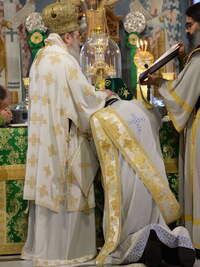 • Kατά τήν διάρκεια τῆς Θείας Λειτουργίας ὁ Σεβασμιώτατος προέβη στήν εἰς Πρεσβύτερον χειροτονία, τοῦ εὐλαβεστάτου Διακόνου Ἰωάννου Σταυροπούλου, στόν ὁποῖο ἐτόνισε ὃτι, ἂν χρειασθῇ, νά εἶναι ἓτοιμος, ὃπως ὃλοι μας, νά δώσῃ ἀκόμη καί τό αἷμα του γιά τήν Ὀρθόδοξη πίστη μας καί τήν πατρίδα μας, ὃπως ἒκαμαν οἱ Ἣρωες καί Μάρτυρες τοῦ Γένους μας, διαχρονικά".