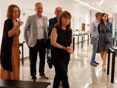 Νωρίτερα, όπως αναφέρει σχετική ανακοίνωση, η πρόεδρος της Ταινιοθήκης της Ελλάδος κυρία Μαρία Κομνηνού ξενάγησε την κυρία Σακελλαροπούλου στην έκθεση «Μαγικές εικόνες» της Ταινιοθήκης της Ελλάδος, η οποία μάλιστα τελεί υπό την αιγίδα της Α.Ε. της Προέδρου της Δημοκρατίας. H έκθεση προαναγγέλλει τη λειτουργία του Μουσείου Κινηματογράφου της Ταινιοθήκης της Ελλάδος, το οποίο, μέσα από σπάνια εκθέματα, αφηγείται την εξέλιξη της τέχνης του κινηματογράφου στην Ελλάδα και το εξωτερικό. Η έκθεση πραγματοποιήθηκε με την οικονομική υποστήριξη της Γενικής Διεύθυνσης Σύγχρονου Πολιτισμού -Διεύθυνση Εικαστικών, Αρχιτεκτονικής, Φωτογραφίας και Μουσείων του ΥΠΠΟΑ, σε επιμέλεια της εικαστικού, Καθηγήτριας Γλυπτικής της Ανωτάτης Σχολής Καλών Τεχνών (ΑΣΚΤ) και αντιπροέδρου του Ιδρύματος Αφροδίτης Λίτη.