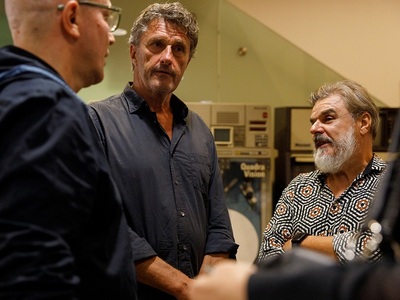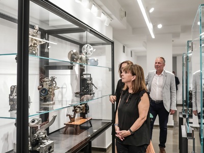 Στην ξενάγηση παραβρέθηκαν οι Γιάννης Σακαρίδης, Γιώργος Δεμερτζής και ο καλλιτεχνικός διευθυντής του Φεστιβάλ Κινηματογράφου Θεσσαλονίκης Ορέστης Ανδρεαδάκης.
