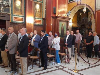 Στην Θεία λειτουργία παρέστησαν ο Πρόεδρος του Εμπορικού και Εισαγωγικού Συλλόγου Πατρών Κώστας Ζαφειρόπουλος, ο Πρόεδρος της Ομοσπονδίας κ. Βαγενάς, μέλη της διοίκησης του Συλλόγου και συνάδελφοι καθώς και ο Αντιπεριφερειάρχης Αχαΐας Χαράλαμπος Μπονάνος, ο Περιφερειακός Σύμβουλος κ. Δριβήλας, ο Πρόεδρος του ΤΕΕ κος Αϊβαλής και οι πρώην πρόεδροι του Συλλόγου κ.κ. Ρώρος και Στριφτούλιας.