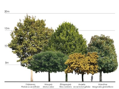 Α - Πλάτανος: Δέντρο το οποίο ήδη υπάρχει στο κέντρο της πόλης και παρέχει μια από τις καλύτερες δυνατές σκιάσεις. Σημείο που χρειάζεται προσοχή είναι οι τοποθεσίες που θα φυτευθούν οι πλάτανοι αφού θα πρέπει να υπάρχουν υπόγεια ύδατα.