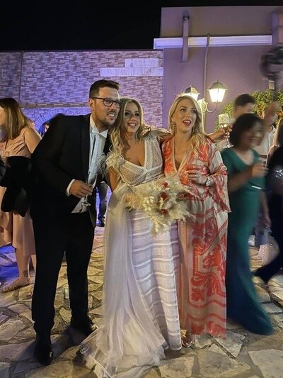 Μετά το τέλος της τελετής ακολούθησε γαμήλιο party σε γνωστό κτήμα, με τον DJ Παναγιώτη Κολλιόπουλο και Γιώργο Καρρά να ξεσηκώνουν τους καλεσμένους μέχρι το πρωί.