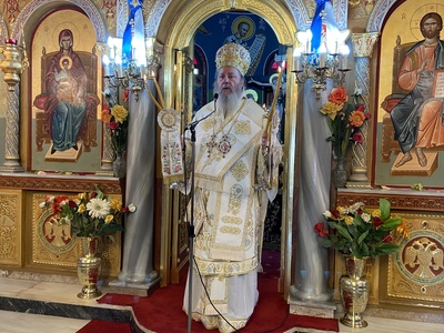 Ο προστάτης του χωριού σας, Άγιος Ιωάννης ο Θεολόγος είναι ο Ευαγγελιστής της αγάπης. Όλο το Ευαγγέλιο το οποίο συνέγραψε ομιλεί για την αγάπη του Θεού προς τον άνθρωπο και την αγάπη του Θεού προς τους αδελφούς. Η αγάπη είναι η βασίλισσα των αρετών και το κλειδί της πόρτας του Παραδείσου. Ας έχουμε λοιπόν αδελφοί μου αγάπη μεταξύ μας και ας αποδιώχνουμε πάθη, κακίες και μίση".
