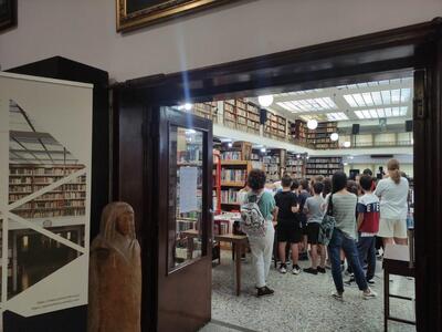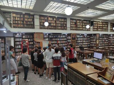 Μαθητές και εκπαιδευτικοί ξεναγήθηκαν στην έκθεση από τον εικαστικό Ιωάννη Παπαδόπουλο και στη Δημοτική Βιβλιοθήκη από την προϊσταμένη Κατερίνα Κούρου.
