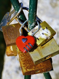 Μια κλειδαριά με έντονη προσωπικότητα, παρά την προχωρημένη "σήψη" της είναι αυτή που από τον λαιμό της κρέμεται ένας κρίκος κι από αυτόν κρέμονται δύο μεταλλικές καρδούλες, επίσης σκουριασμένες. Εικόνα που προκαλεί τρυφερότητα μα και συγκίνηση.