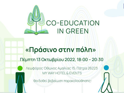 Η Ημερίδα διοργανώνεται στο πλαίσιο υλοποίησης του Ευρωπαϊκού Έργου Erasmus+ KA2 “Co-Education in Green”, στο οποίο η p-consulting.gr συμμετέχει ως εταίρος, και που έχει ως στόχο την ενημέρωση και ενθάρρυνση των πολιτών, στο να ηγηθούν των τοπικών κοινοτήτων και να προάγουν έργα ανάπλασης των χώρων πρασίνου, ενθαρρύνοντας την προσβασιμότητα χωρίς αποκλεισμούς, και την αντιμετώπιση των περιβαλλοντικών ζητημάτων.