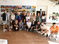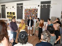 Ο Δήμαρχος Πατρέων, Κώστας Πελετίδης, στο περιθώριο της επίσκεψής του στην Αγορά Αργύρη, όπου λειτουργεί η έκθεση του εικαστικού εργαστηρίου, συνάντησε τους φοιτητές και τους καθηγητές από επτά χώρες που, στα πλαίσια του προγράμματος ERASMUS, βρίσκονται στην Πάτρα και ασχολούνται με δραστηριότητες εκπαίδευσης νέων για την αντιμετώπιση ατόμων με λιγότερες ευκαιρίες στη ζωή (Άτομα με αναπηρία, άτομα με ψυχικά νοσήματα, άτομα από δυσπρόσιτες περιοχές, άτομα από πολύ φτωχές οικογένειες κ.ο.κ.).