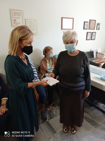 Η πρόεδρος του Ομίλου, Μαρία Ασημακοπούλου, πλαισιωμένη από μέλη του Ομίλου παρέδωσε στους εκπροσώπους του Τμήματος Πάτρας της «Φλόγας», το ποσό των 4.000 ευρώ.