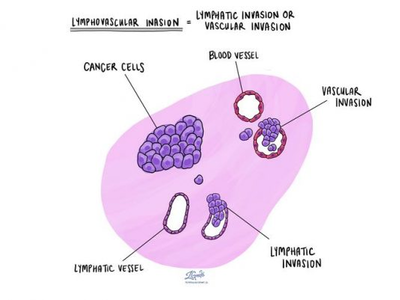 Το αίμα κινείται γύρω από το σώμα μέσω μακριών λεπτών σωλήνων που ονομάζονται αιμοφόρα αγγεία. Ένας άλλος τύπος υγρού που ονομάζεται λέμφος που περιέχει απόβλητα και κύτταρα του ανοσοποιητικού συστήματος κινείται γύρω από το σώμα μέσω εξειδικευμένων αγγείων που ονομάζονται λεμφαγγεία. Ο όρος λεμφαγγειακή εισβολή χρησιμοποιείται για να περιγράψει κύτταρα όγκου που βρίσκονται μέσα σε ένα αίμα ή λεμφικό αγγείο. Η λεμφαγγειακή εισβολή είναι σημαντική γιατί αυτά τα κύτταρα είναι σε θέση μεταστάσεις (εξάπλωση) σε άλλα μέρη του σώματος όπως π.χ λεμφαδένες ή τους πνεύμονες. Η λεμφαγγειακή εισβολή είναι πολύ συχνή στο καρκίνωμα NUT.