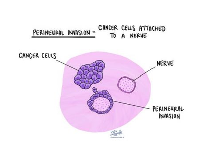 Τα νεύρα είναι σαν μακριά σύρματα που αποτελούνται από ομάδες κυττάρων που ονομάζονται νευρώνες. Τα νεύρα βρίσκονται σε όλο το σώμα και είναι υπεύθυνα για την αποστολή πληροφοριών (όπως θερμοκρασία, πίεση και πόνο) μεταξύ του σώματός σας και του εγκεφάλου σας. Η περινευρική εισβολή είναι ένας όρος που χρησιμοποιούν οι παθολόγοι για να περιγράψουν κύτταρα όγκου που συνδέονται με ένα νεύρο. Η περινευρική εισβολή είναι σημαντική επειδή τα καρκινικά κύτταρα μπορούν να χρησιμοποιήσουν το νεύρο για να εξαπλωθούν στους περιβάλλοντες ιστούς. Αυτό αυξάνει τον κίνδυνο ο όγκος να αναπτυχθεί εκ νέου μετά τη θεραπεία.