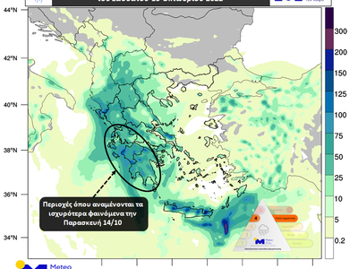 Από τη νύχτα της Παρασκευής 14/10 προς Σάββατο 15/10 βροχές και καταιγίδες θα εκδηλωθούν κυρίως στη Θεσσαλία, στη Στερεά, στην Πελοπόννησο, στο Κεντρικό και Νότιο Αιγαίο και στην Κρήτη με τα ισχυρότερα φαινόμενα να αναμένονται στην Εύβοια και στην Κρήτη.