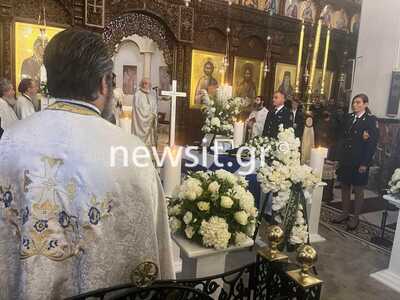 Συντετριμμένες έφθασαν στην εκκλησία και σύζυγος του δύο φορές “αργυρού” Ολυμπιονίκη, Δώρα Τσαμπάζη, και η αδερφή του, που σε άσχημη ψυχολογική κατάσταση έλεγε «αδελφέ μου, αχ αδελφέ μου».