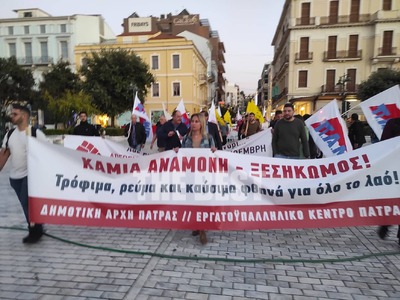 Με μια μεγάλη Παμπατραϊκή συγκέντρωση, σήμερα Τρίτη το απόγευμα, στην Αγίου Νικολάου και Τριών Συμμάχων, που οργάνωσαν η Δημοτική Αρχή και το Εργατικό Κέντρο Πάτρας, οι εργαζόμενοι, οι νέοι και ο λαός της πόλης έστειλαν μήνυμα σε αυτούς που τους έχουν καταδικάσει στην μεγάλη ακρίβεια και στην ενεργειακή φτώχεια.