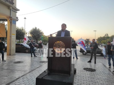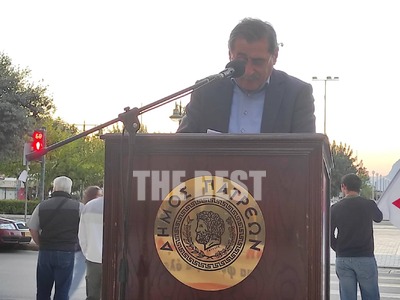Στη συγκέντρωση χαιρετισμό απηύθυνε ο Δήμαρχος Πατρέων, Κώστας Πελετίδης.