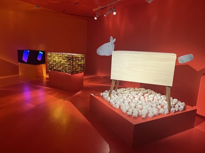 Επίσης προβάλλονται συνεντεύξεις με τους δημιουργούς - οραματιστές των μπαούλων, ενώ η επισκέψιμη αποθήκη είναι γεμάτη με κλιμακωτά ξύλινα κιβώτια που αποτελούν το σκηνικό για μια λεγεώνα συνεργατικών μπαούλων. Εδώ, το ευφάνταστο πνεύμα της συνεργατικής έκθεσης ζωντανεύει, με αρκετές αριστουργηματικές ιδέες, όπως ο χρωματιστός κορμός του Studio Proba, η ερμηνεία The Beauty of Edible Things (2021) της Carolien Niebling και το Gradual Pattern take του Cao Yuxi.
