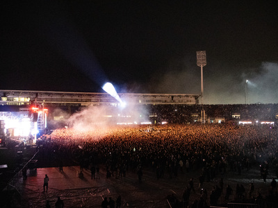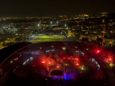 Πάνω από 25.000 άνθρωποι βρέθηκαν μέσα στο στάδιο για να ακούσουν και τα τραγούδια του νέου του δίσκου "Μετρό". Πυρσοί, καπνογόνα και παλμός δυνατός, σαν τα τραγούδια του καλλιτέχνη, που ξεκίνησε από το συγκρότημα "Αστέρια του Βορρά" έδωσαν στη Θεσσαλονίκη ένα κλίμα γιορτής.
