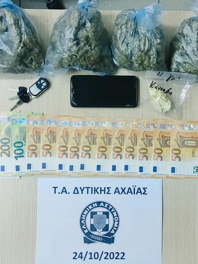 Σύμφωνα με την ΕΛ.ΑΣ. στην πρώτη περίπτωση, ο αλλοδαπός άνδρας εντοπίστηκε στο Νέο Βουπράσιο από τους αστυνομικούς Τμήματος Ασφάλειας Δυτικής Αχαΐας, τη στιγμή που απέκρυπτε σε θερμοκήπιο ένα δέμα. Οι αστυνομικοί ακινητοποίησαν άμεσα τον αλλοδαπό άνδρα και κατάσχεσαν το δέμα, που περιείχε 600 γραμμάρια κάνναβης, διαμοιρασμένη σε τέσσερις συσκευασίες. Σε έρευνα που ακολούθησε στην οικία του αλλοδαπού οι αστυνομικοί βρήκαν και κατάσχεσαν ακόμη τέσσερα γραμμάρια κάνναβης και το χρηματικό ποσό των 1.350 ευρώ.