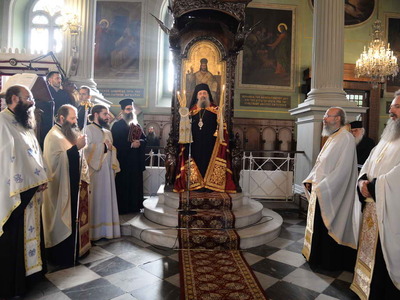 Τελέστηκε ο Ἑσπερινός, χοροστατοῦντος τοῦ σεβασμιοτάτου Μητροπολίτη Πατρῶν κ.κ. Χρυσοστόμου, ἒγινε ὁ Ἁγιασμός και στη συνέχεια, ὁ ἐντεταλμένος ὁμιλητής, Πανοσιολογιώτατος Ἀρχιμανδρίτης π. Ἀμβρόσιος Γκουρβέλος, εἰσηγήθηκε τό θέμα: «Τό κατηχητικό ἒργο σήμερα». Ὁ ὁμιλητής παρουσίασε μέ γλαφυρότητα καί μέ σύγχρονη γλῶσσα καί τρόπο, τά τῆς κατηχήσεως τῶν νέων σήμερα καί μάλιστα μέσω πολλῶν δυσκολιῶν.