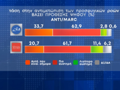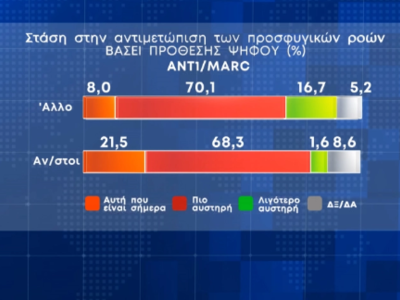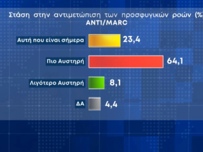 Για το μεταναστευτικό και την αντιμετώπιση των προσφυγικών ροών το 64,1% ζητά πιο αυστηρή στάση.