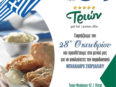 Εμπιστευόμαστε λοιπόν τους έμπειρους σεφ του "Τριών" για να απολαύσουμε τον παραδοσιακό μπακαλιάρο με σκορδαλιά, μαγειρεμένο όπως του αξίζει!