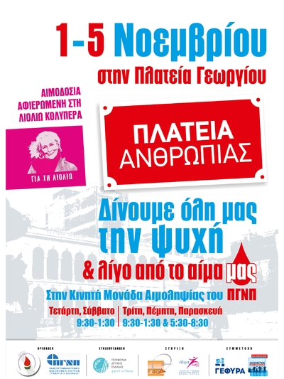 Κινητή Μονάδα Αιμοδοσίας του ΠΓΝΠ, θα βρίσκεται στην Πλατεία Γεωργίου, από την Τρίτη 1 Νοεμβρίου έως το Σάββατο 5 Νοεμβρίου