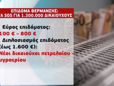 Λίγο πριν από τα Χριστούγεννα αναμένεται η καταβολή του επιδόματος θέρμανσης η οποία θα ολοκληρωθεί στο τέλος του Απριλίου 2023.
