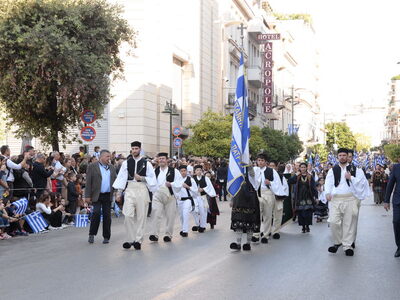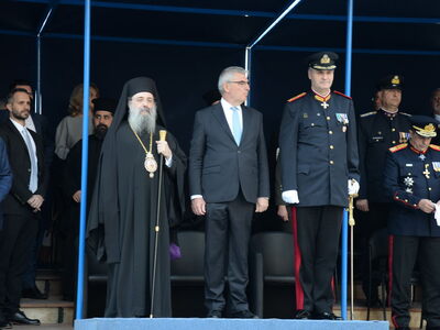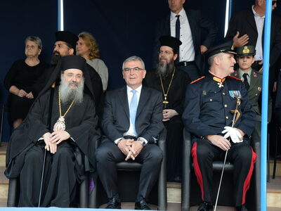 Παρέστη τέλος καί παρηκολούθησε τήν μεγαλειώδη παρέλαση τῶν πολιτικῶν καί στρατιωτικῶν τμημάτων καί προέβη σέ ἐπίκαιρες δηλώσεις γιά τήν Ἐθνική Ἐπέτειο στά Μ.Μ.Ε.