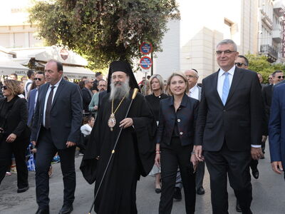 Ἡ ἐπέτειος τῆς 28ης Ὀκτωβρίου, ἐτόνισε ὁ Σεβασμιώτατος, εἶναι ἡμέρα ἐθνικῆς μνήμης καί τιμῆς στούς ἣρωές μας, ἀλλά καί ἐθνικῆς ἀφύπνισης, ὣστε ἑνωμένοι, ὃπως τότε οἱ πρόγονοί μας, νά ἀντιτάσσωμε τό «ΟΧΙ» στούς ὃποιους συγχρόνους ἐπιβούλους τῶν ἱερῶν καί τῶν τῶν ὁσίων μας, διατρανώνοντας ὃτι εἲμαστε ἀποφασισμένοι μέχρι τῆς τελευταίας ρανίδος τοῦ αἳματός μας νά ὑπερασπιστοῦμε καί τήν μικρότερη πέτρα τῆς ἑλληνικῆς αἱματοποτισμένης γῆς.