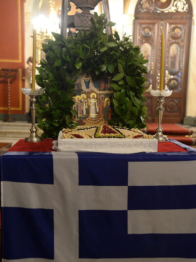 Στό τέλος τῆς Θείας Λειτουργίας ἐτέλεσε σέ κλῖμα βαθειᾶς συγκίνησης τό ἱερό Μνημόσυνο ὑπέρ ἀναπαύσεως τῶν ψυχῶν πάντων τῶν, ὑπέρ τῆς Πίστεως καί τῆς Πατρίδος ἡμῶν, ἡρωικῶς ἀγωνισαμένων καί ἐνδόξως πεσόντων πατέρων καί ἀδελφῶν ἡμῶν, κατά τό ἒπος τοῦ ’40 καί κατά τήν διάρκεια τῆς Ἰταλο-Γερμανικῆς κατοχῆς.