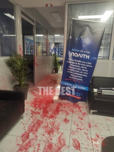 Τέσσερα άτομα εισέβαλλαν στα γραφεία του κόμματος και πέταξαν μπογιές, ενώ προκάλεσαν και ζημιές.