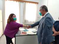 Νωρίτερα ο κ. Καρβέλης επισκέφθηκε τον Δήμαρχο Ερυμάνθειας στο γραφείο του στο Δημαρχείο, όπου εκεί είχαν την ευκαιρία να συζητήσουν θέματα που αφορούν την περιοχή σε ότι αφορά την υγειονομική κάλυψη. Σε αυτή τη βάση, προγραμματίστηκε και η συνεργασία της 6ης ΥΠΕ με τον Δήμο Ερυμάνθου για δράσεις που υλοποιεί, με πρωτοβουλία του Διοικητή, η 6η ΥΠΕ και αφορούν κυρίως συμπολίτες που δεν έχουν άμεση πρόσβαση στην πρόληψη. "Αυτό που λέω πάντα και το τηρώ πιστά από τη στιγμή που ανέλαβα τη διοίκηση στην 6η ΥΠΕ, είναι ότι κανένας συμπολίτης μας δεν θα μένει αβοήθητος", σημείωσε ο κ. Καρβέλης.