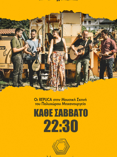 Οι Ρέπλικα που μετράνε ήδη 4 χρόνια εμφανίσεων σε μουσικές σκηνές και φεστιβάλ της Πάτρας αλλά και σε άλλες πόλεις με πολύ μεγάλη επιτυχία και ανταπόκριση, ξεκινούν live εμφανίσεις στη Μουσική Σκηνή του Πολυχώρου "Μηχανουργείο" στην οδό Ευμήλου, στην Πάτρα κάθε Σάββατο.