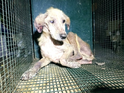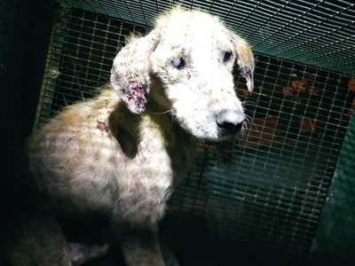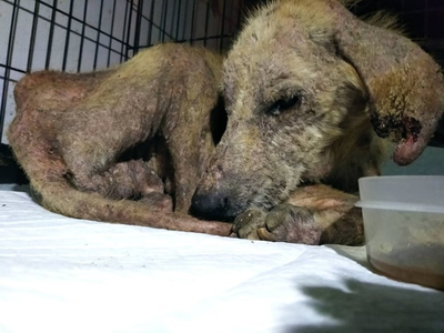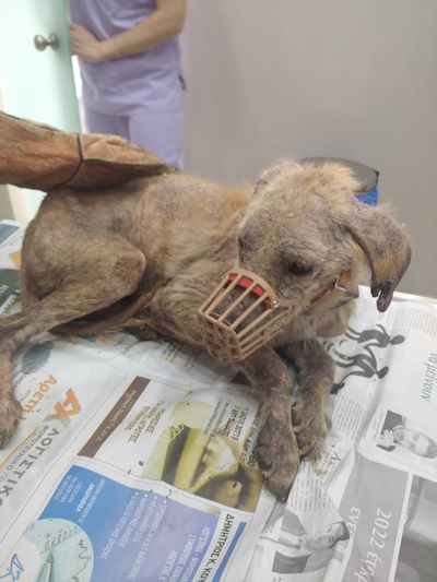 Ένα σκυλάκι σε άθλια κατάσταση, κοκκαλιασμένο, τυφλό απο το ένα μάτι και άρρωστο από ψώρα και καλαζαρ εντόπισε ο Φιλοζωικός Σύλλογος Κρεστένων “Νοιάζομαι” στο χωριό Καλλιθέα της Ηλείας.
