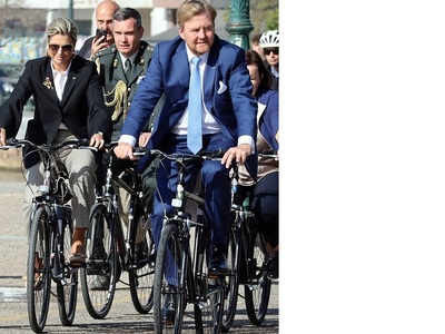 Στη Θεσσαλονίκη η Μάξιμα ήταν πολύ απλή, με μαύρο σακάκι και καθημερινό παντελόνι με μικρά καρό. Ένα office σύνολο, το οποίο μόνο τα Ferragammo παπούτσια της και η καρφίτσα που παρέπεμπε στην Ελλάδα το έκαναν ενδιαφέρον. Με αυτή την περιβολή έκανε ποδηλατάδα στη συμπρωτεύουσα, άλλωστε οι Ολλανδοί έχουν παραδοσιακό έμβλημα το ποδήλατο.