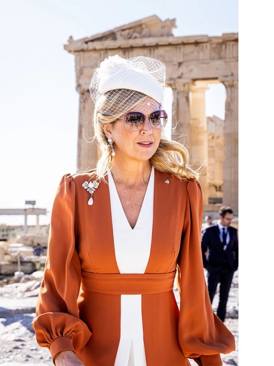 Συγκεκριμένα την περασμένη Δευτέρα η Μάξιμα έφθασε στην Αθήνα και επισκέφθηκε την Ακρόπολη με δίχρωμο φόρεμα Zeus + Dione, στο οποίο έκανε τη δική της, παρέμβαση «αλλάζοντας» το αρχαιοελληνικό του DNA: Γόβες Gianvito Rossi, Sophie Habsburg clutch τσαντάκι, μαργαριταρένια καρφίτσα και κλασικό royal καπέλο και με βέλο ολοκλήρωσαν το outfit.