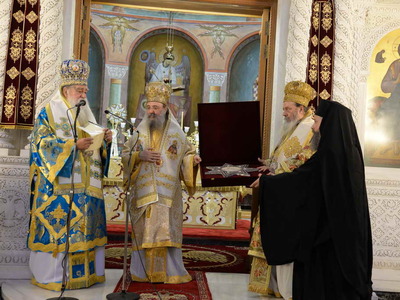 Στόν Σεβασμιώτατο Διοκαισαρείας προσέφερε, ὡς εὐλογία ὁ Σεβασμιώτατος, ἓνα ἐπιγονάτιο μέ τήν Παναγία καί στόν π. Συμεών ἐπιστήθιο Σταυρό, ἐνῶ, ὁ Σεβασμιώτατος Διοκαισαρείας προσέφερε ἀστέρα, ἀναμνηστικό δῶρον ἐκ τῆς Βηθλεέμ καί τοῦ Θεοδέγμονος Σπηλαίου εἰς ἀνάμνησιν τῆς ὑποδοχῆς καί τοῦ προσκυνήματος τῆς Εἰκόνος τῆς Παναγίας ἐκ τῆς Ἁγίας Γῆς, εἰς τήν πόλιν τῶν Πατρῶν.
