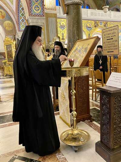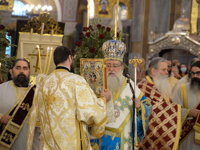Ἐπίσης εὐχαρίστησε τόν Σεβασμιώτατον Μητροπολίτην Διοκαισαρείας κ. Βενέδικτον, ὁ ὁποῖος συνόδευσε τήν ἱερά Εἰκόνα ἀπό τά Ἱεροσόλυμα στήν Πάτρα, ὡς καί τόν Ἱερέα π. Συμεών ἀπό τήν Ναζαρέτ πού ἦλθε μαζί μέ τόν ἃγιο Διοκαισαρείας.