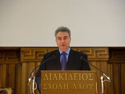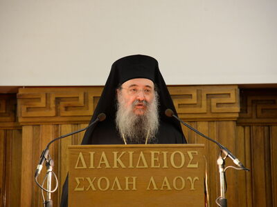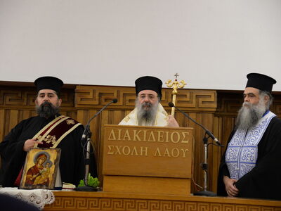 Ο κ.κ. Χρυσόστομος τέλεσε τόν ἁγιασμό μετά ἀπό τόν θερμό χαιρετισμό τοῦ ἐλλογιμοτάτου Προέδρου τῆς Διακιδείου Σχολῆς κ. Ἰωάννου Ἀθανασοπούλου, ὁ ὁποῖος & εὐχαρίστησε ὃλους, τόν σεβασμιότατο Μητροπολίτη, τήν Περιφέρεια Δυτικῆς Ἑλλάδος, τούς Ἐκπροσώπους Ἀρχῶν καί Φορέων καί τό πυκνό ἀκροατήριο, γιά τήν στήριξη στήν προσπάθεια συνεχίσεως τῆς λειτουργίας τῆς περιωνύμου Διακιδείου Σχολῆς, τῆς ὁποίας τό βῆμα ἐκλέισαν, στό διάβα τοῦ χρόνου, διακεκριμένες προσωπικότητες.