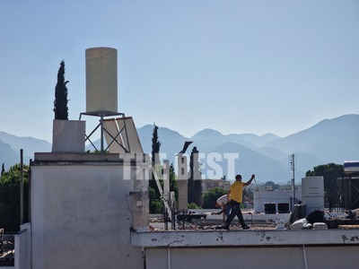 Το μεσημέρι της Τρίτης συνεργείο μετέβη στην ταράτσα της οικίας και προχώρησε στην αποξήλωση όλων των υποστηρικτικών εγκαταστάσεων. Για τα πιο βαριά συστήματα επιστρατεύτηκε γερανός.