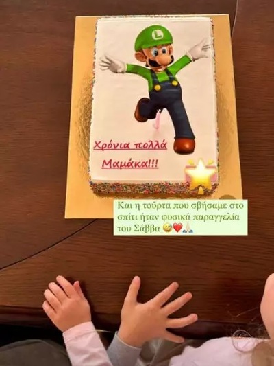 Η παρουσιάστρια κάνοντας σχετική ανάρτηση στο instagram δημοσίευσε φωτογραφία με την τούρτα που επέλεξε ο γιο της Σάββας με τον αγαπημένο του ήρωα και την επιγραφή: «Χρόνια πολλά μαμάκα».