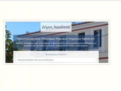 Υπενθυμίζεται ότι οι δημότες μπορούν να αξιοποιούν την πλατφόρμα https://aigialeia.digitalcert.gr επιλέγοντας την επιθυμητή υπηρεσία ανάμεσα στις δεκάδες που είναι διαθέσιμες και που συνεχώς ανανεώνονται.