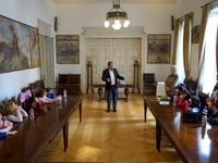 Γέμισε χαρούμενες παιδικές φωνές και χαμόγελα, σήμερα (Παρασκευή 11 Νοέμβρη), το Γραφείο του Δημάρχου Πατρέων, Κώστα Πελετίδη. Ήταν οι μαθητές της Γ’ Τάξης του 4ου Δημοτικού Σχολείου της Πάτρας που για εκπαιδευτικούς λόγους, συνοδευόμενοι από τους δασκάλους τους, επισκέφθηκαν το Δημαρχείο.