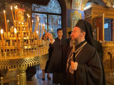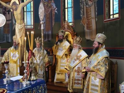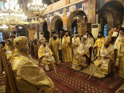 Συλλειτούργησαν οι Μητροπολίτες Ναυπάκτου κ. Ιερόθεος, Δημητριάδος κ. Ιγνάτιος, Λαρίσης κ. Ιερώνυμος και Κιλκισίου κ. Βαρθολομαίος.