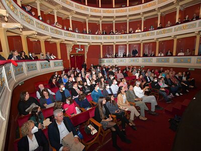 Την παράσταση που τα πρωινά παρακολουθούν και μαθητές σχολείων (με σχεδόν όλες τις παραστάσεις να είναι κλεισμένες έως τα Χριστούγεννα) παρακολούθησαν το βράδυ του Σαββάτου, ο Δήμαρχος Πατρέων Κώστας Πελετίδης, ο πρόεδρος του Δ.Σ. του ΔΗΠΕΘΕ Πάτρας, Πέτρος Βάης, ο αντιπρόεδρος του ΔΣ. Γιώργος Μαγιάκης, μέλη του συμβουλίου του ΔΗ.ΠΕ.ΘΕ., Πρόεδροι των Οργανισμών της πόλης, Αντιδήμαρχοι, δημοσιογράφοι, ηθοποιοί, μουσικοί, χορηγοί της παράστασης αλλά και φίλοι του θεάτρου, που με την παρουσία τους τίμησαν ουσιαστικά την πρώτη μεγάλη παραγωγή του θεάτρου για τα 150 χρόνια του «Απόλλωνα».